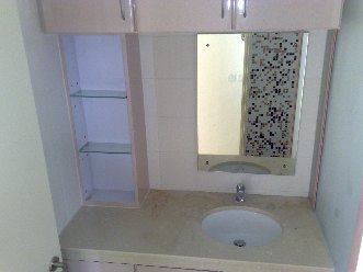 上述洗手盆圖片是雲石冚盆,兩側貼瓦片